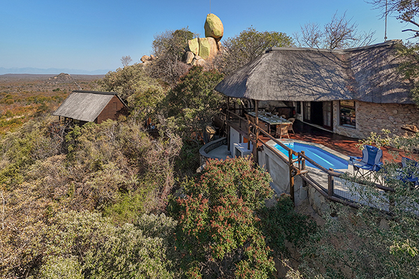 Below, the reserve teems with the Big Five, and from the rocks above, the bush stretches endlessly toward the horizon.