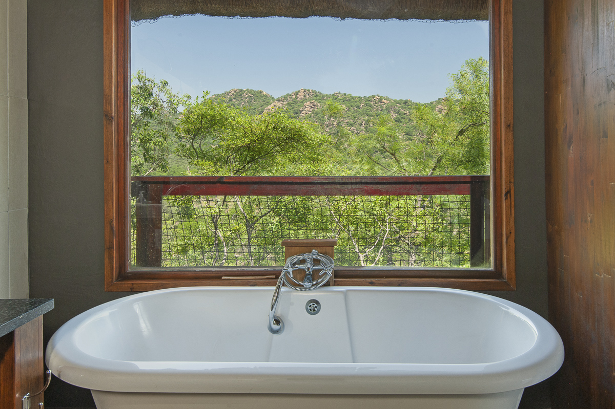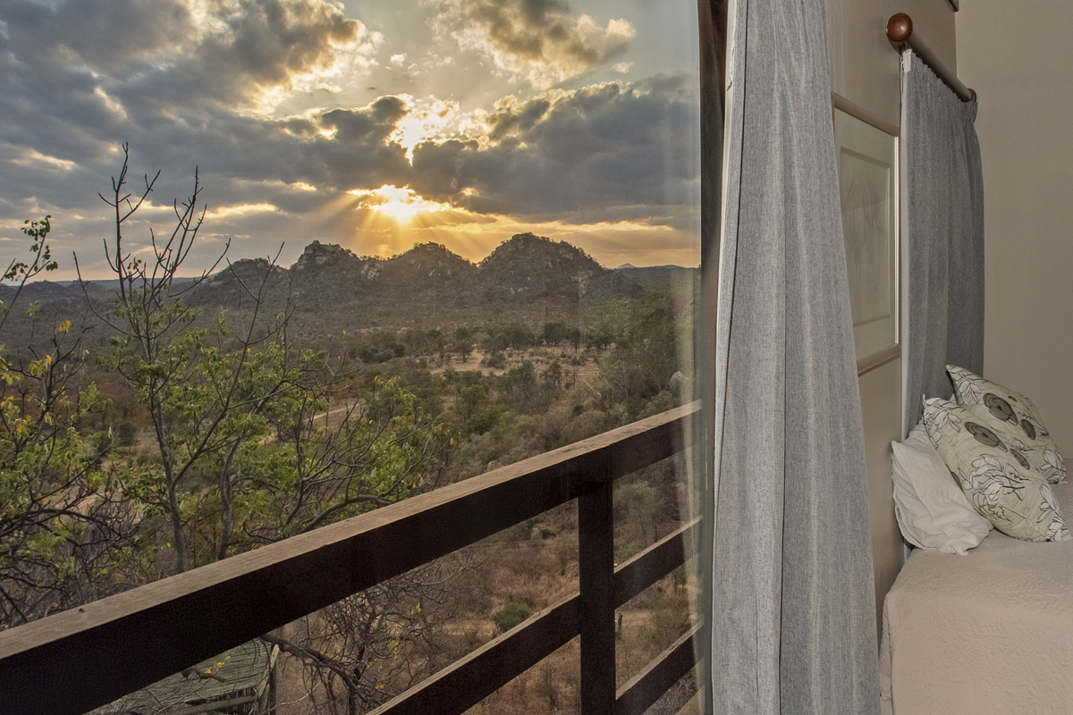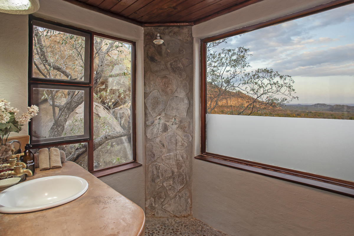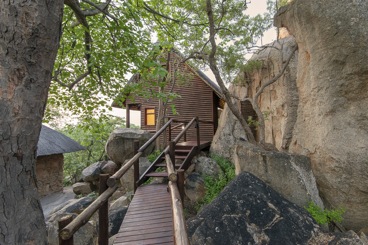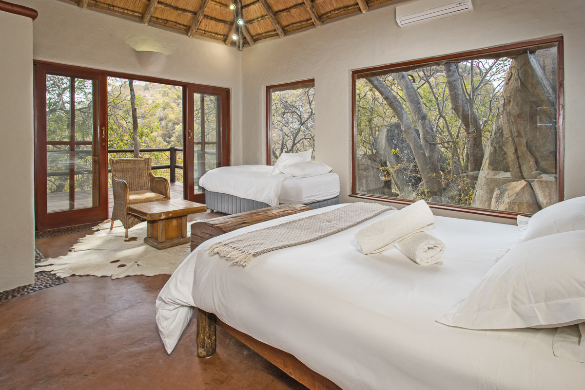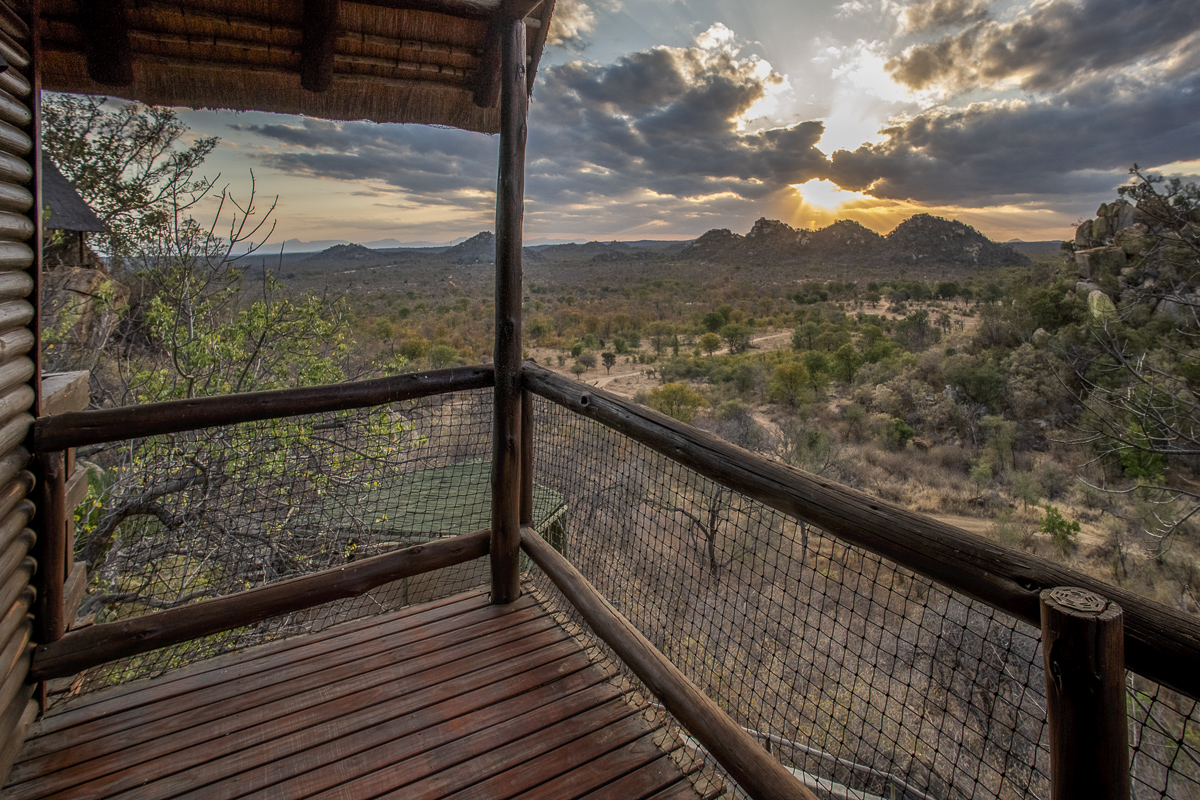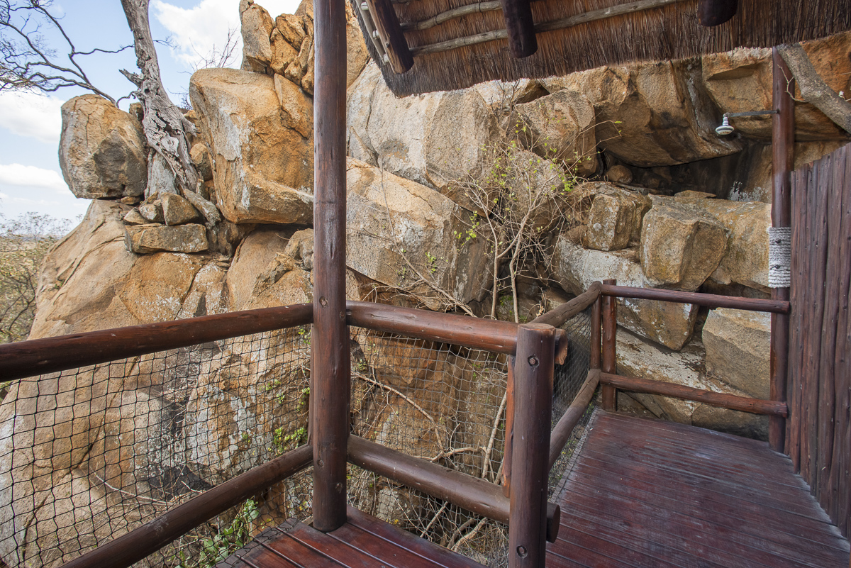 Named after the series of koppies resembling a clenched fist, this wooden cabin offers unmatched panoramas. Enjoy a private balcony with vistas toward the Knuckles, an indoor and outdoor shower, and a bath. The room is framed by huge windows on both sides — granite boulders lit at night on one, open views of the Knuckles on the other.