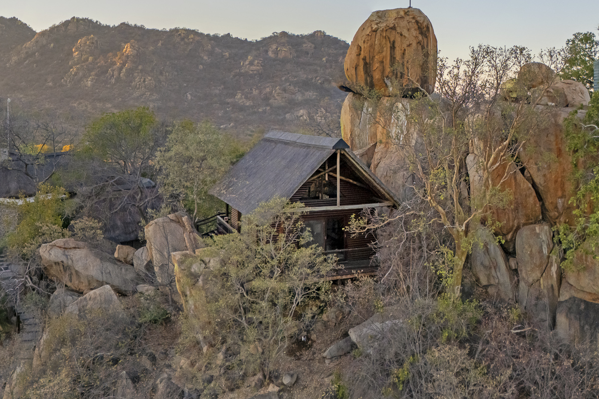 Lillie Lodge can host up to 15 guests in five uniquely designed en-suite rooms, each blending natural elements with thoughtful comfort. The thatched-roof lodge incorporates granite boulders directly into its rooms, bringing the koppie indoors in dramatic and beautiful ways. At night, the rocks glow softly with gentle lighting, while private balconies open to endless views of the Lowveld or the sculpted granite. Each suite has been crafted with character and intimacy, ensuring that no two stays are alike — yet all carry the same sense of sanctuary.