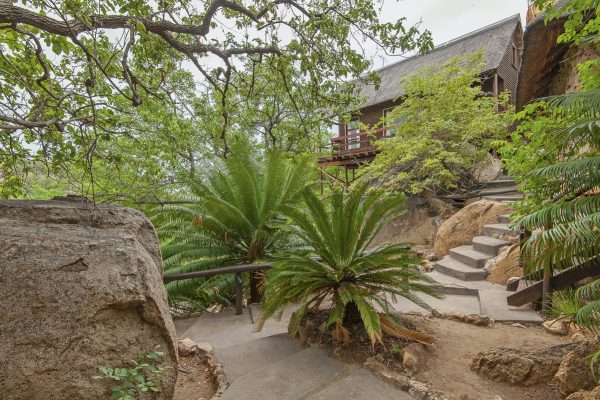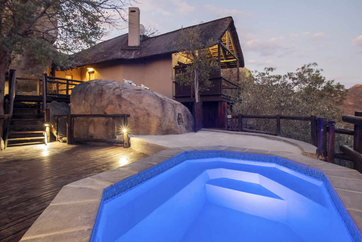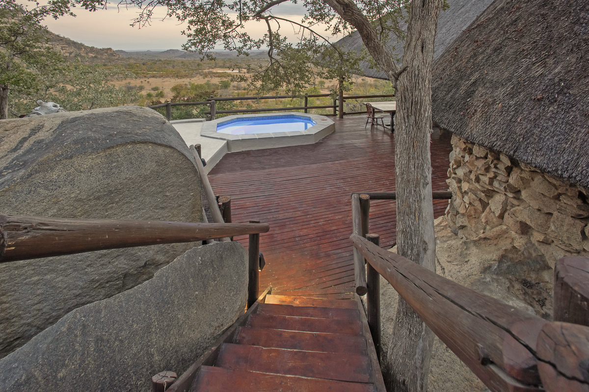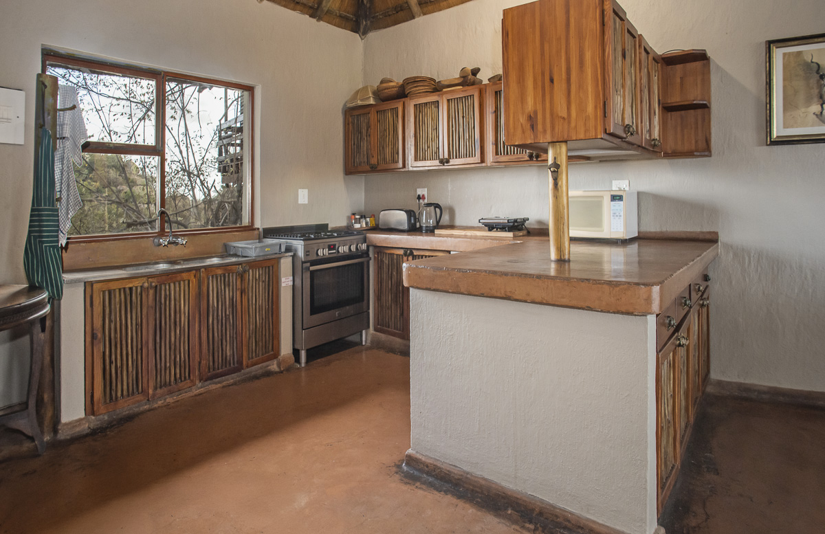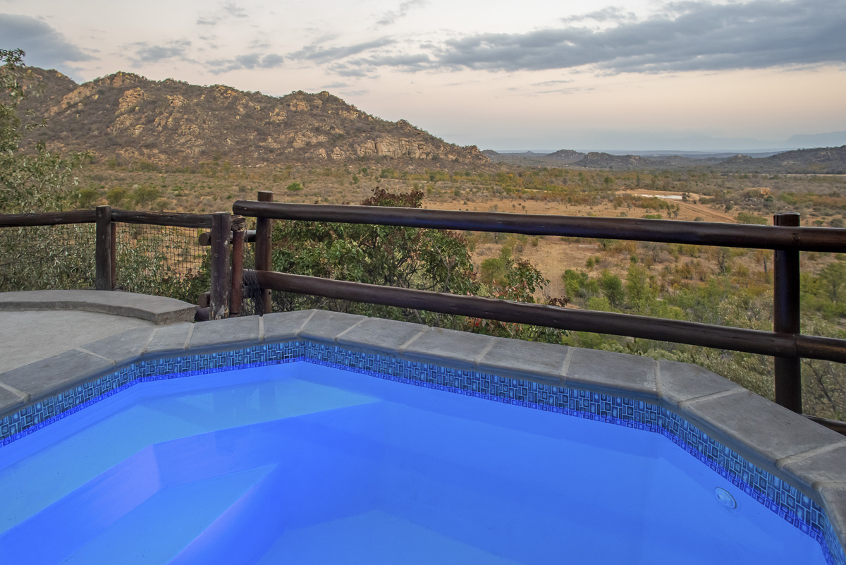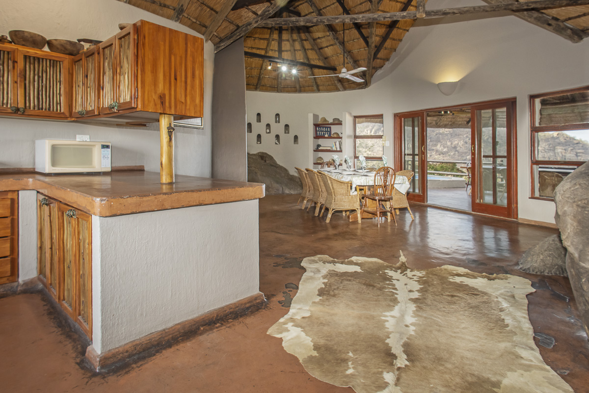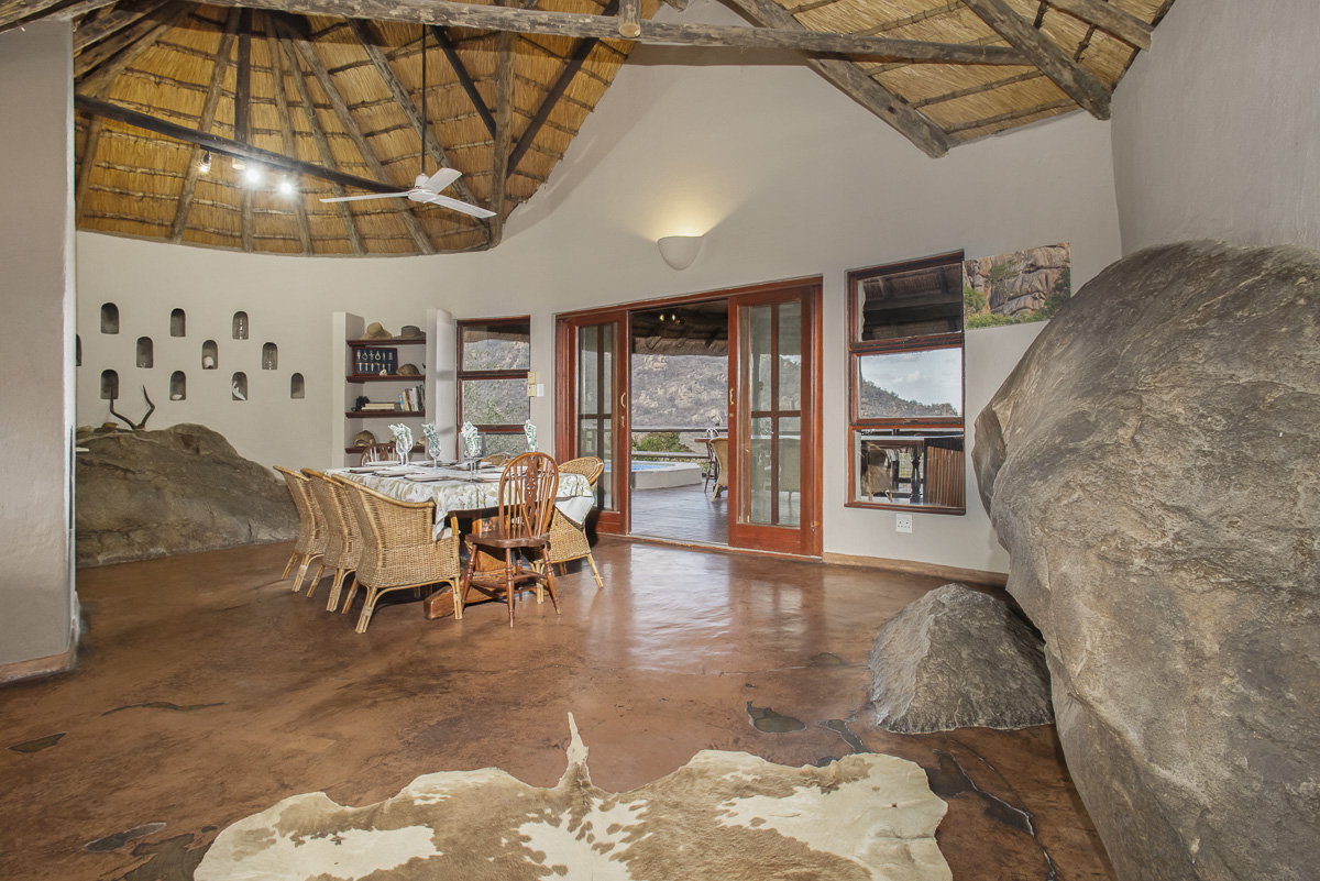 Built into the granite koppie and shaded by a traditional thatched roof, Lillie Lodge is both timeless and comfortable, a retreat shaped by nature itself. Guests can enjoy the fully equipped kitchen, cozy indoor dining with a fireplace, and the open stoep dining area that overlooks sweeping reserve views. A swimming pool with vistas, Wi-Fi, and a firepit for storytelling and braais complete a lodge experience where comfort meets the wilderness.